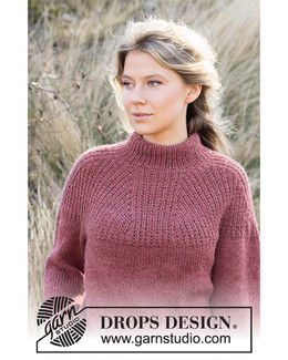 Ullgenser med rundt bærestykke og dobbel halskant. Genseren har en flott mønsterstruktur og strikkes i garnet Nepal fra Drops.