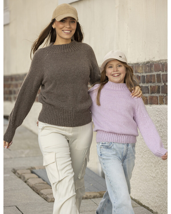 Strikk en stilren raglangenser til dame med myk silhuett og ribbestrikkede detaljer.