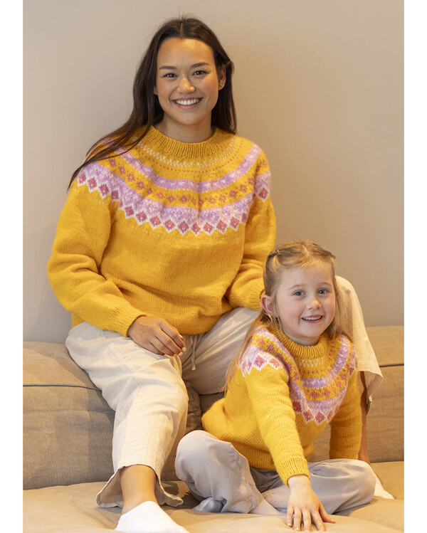 Et klassisk strikkemønster til en damegenser med dekorativt mønstret bærestykke i flere farger. Genseren strikkes i en tidløs modell som gir et mykt og behagelig plagg.