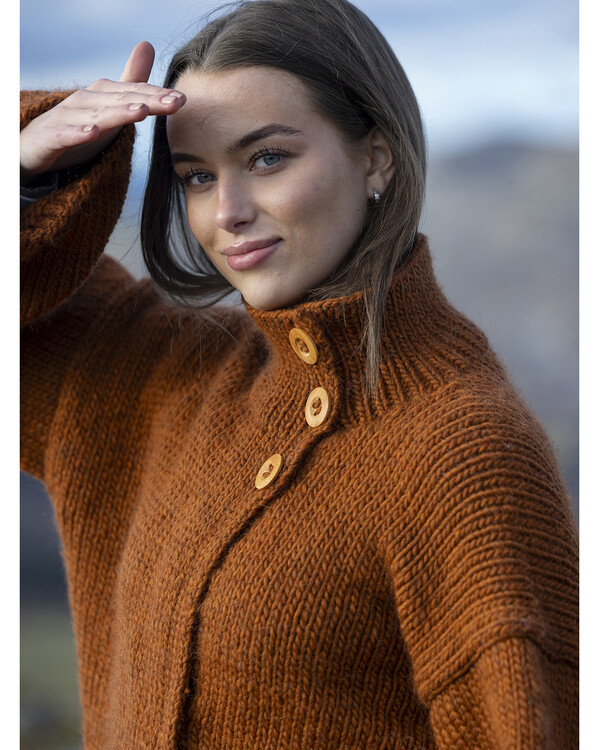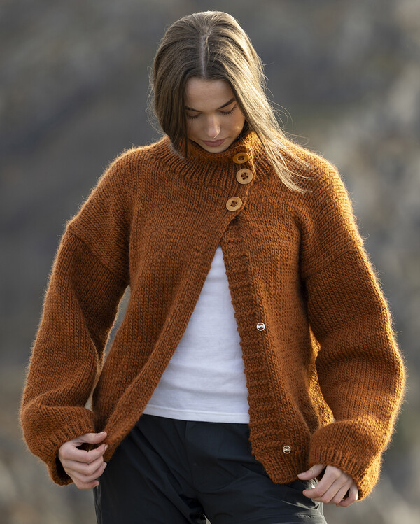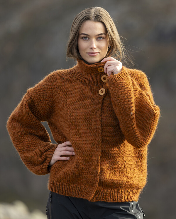 De vide ermene og den strukturrike overflaten gjør jakken til et perfekt hjemmestrikket plagg for kjøligere dager.