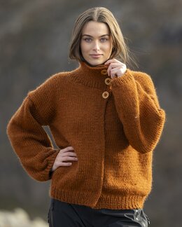 Lag en koselig og moderne jakke med dette strikkemønsteret. Modellen har en avslappet passform, høy hals og dekorative k...