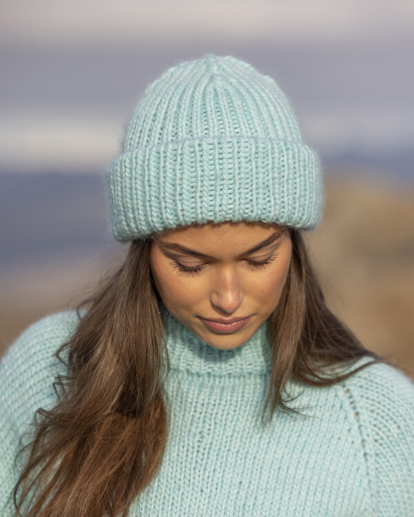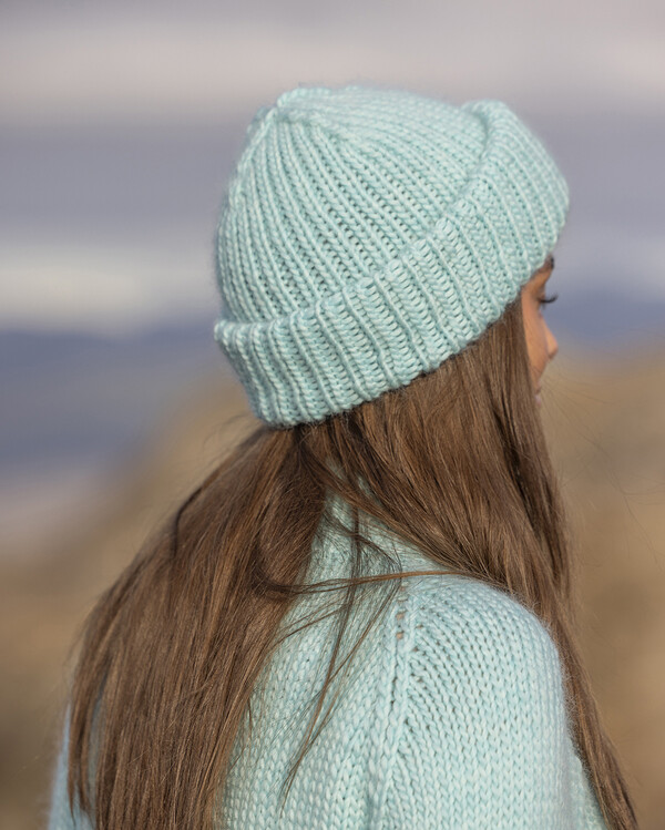 En enkel og varm strikket lue med oppbrettet kant, perfekt for kjølige dager. Den har et klassisk uttrykk og en myk stru...