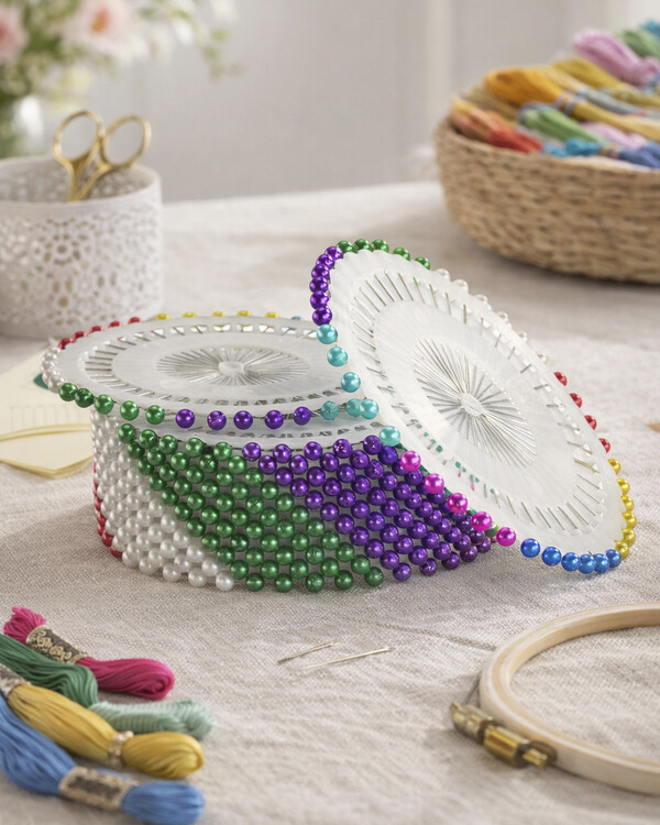 Gi hobbybordet ditt en skikkelig fargeklatt! Disse 480 fargerike nålene med praktiske plasthoder sitter pent organisert på en plastspole – klare til bruk i alle de kreative prosjektene dine. Perfekte til søm og quilting, broderi og arbeid med tekstil, å lage mønster på stoff eller til å holde stoff på plass mens du jobber.