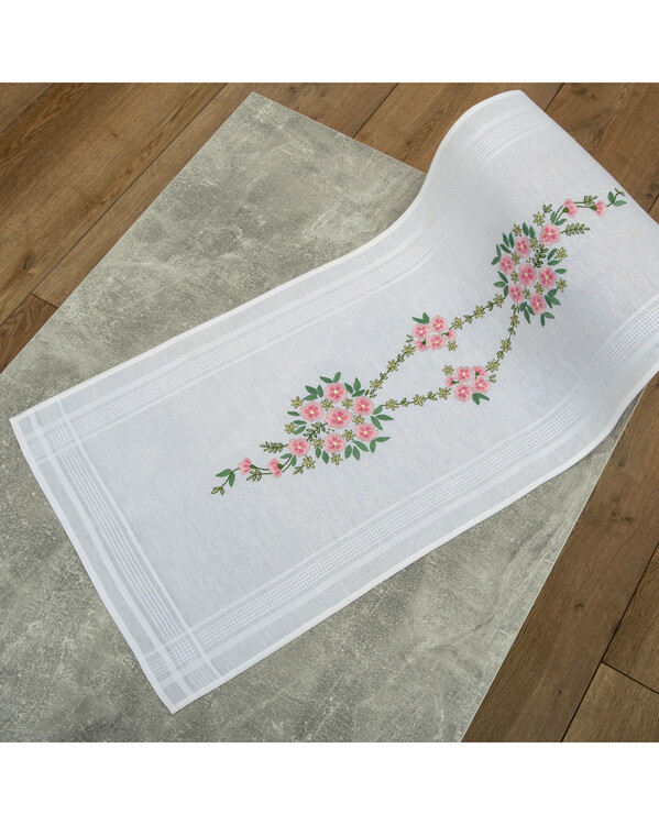 Broder en sommerlig duk og eller løper fra Duftin med fint motiv.Broderes med moulinégarn i plattsøm samt stilkesting- l...