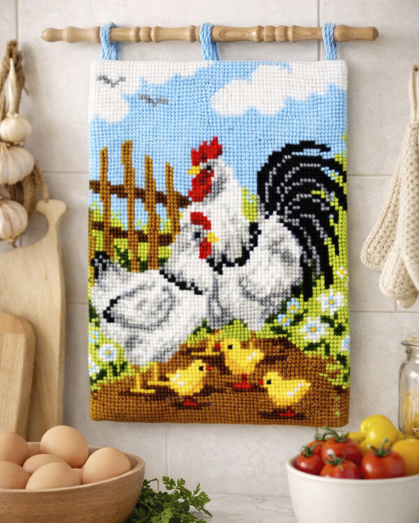 Veggteppe Kyllingfamilien