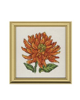 Broderes med moulinégarn i utregnede kors- og attersting på hvit aidavev, 5,4 ruter/cm.