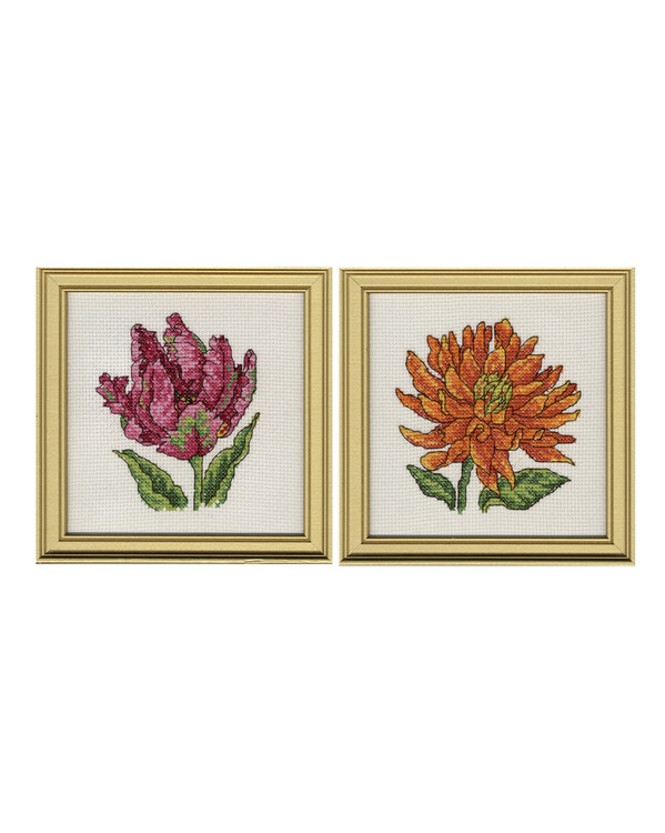 Broder disse fine bildene med fargerike blomster, fra Svarta Fåret. Broderes med moulinégarn i utregnede kors- og atters...