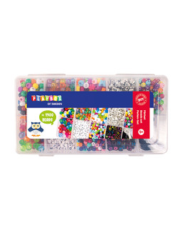 Plastperler i blandede farger og fasonger som levers i en praktisk oppbevaringseske med sorteringsrom. Morsom sett som gir mulighet til å lage halsbånd, armbånd, nøkkelringer m.m.