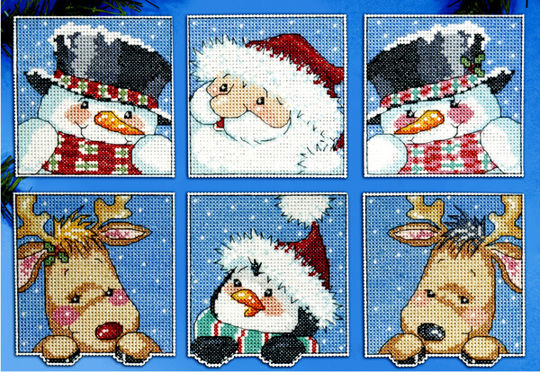 Broderes med moulinégarn i utregnede kors- og attersting på plastic canvas, 5,4 ruter/cm. Størrelse ca 8,5x8,5 cm....