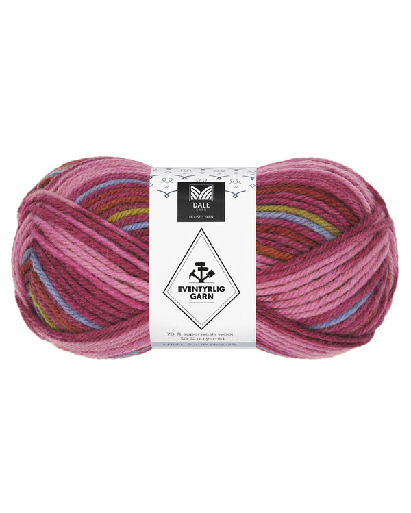 Oppdag fantastisk Eventyrlig Garn som et resultat av samarbeidet med programmet Eventyrlig oppussing! Den er laget av en eksklusiv blanding av 70% superwashull og 30% polyamid, noe som gjør den både slitesterk nok for sokker og behagelig myk å bruke til alle typer plagg